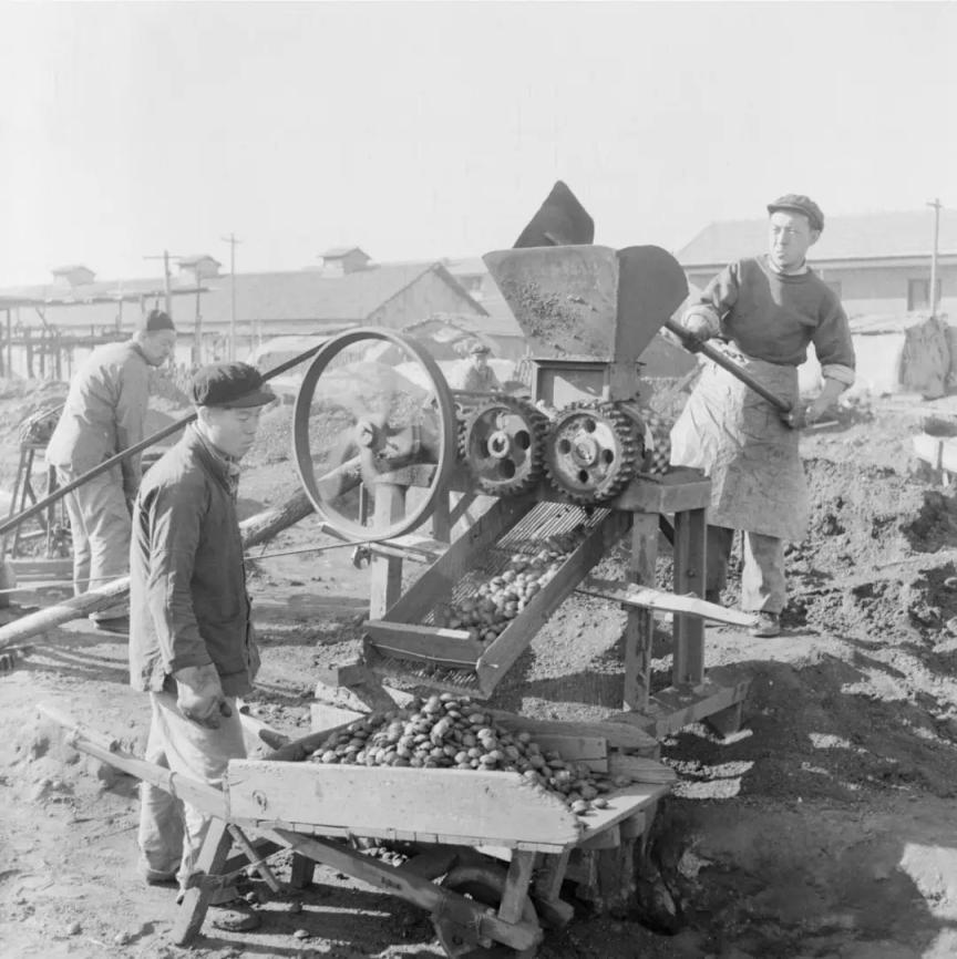 1961年宣武区煤球厂的工人在生产煤球 图源:京报网